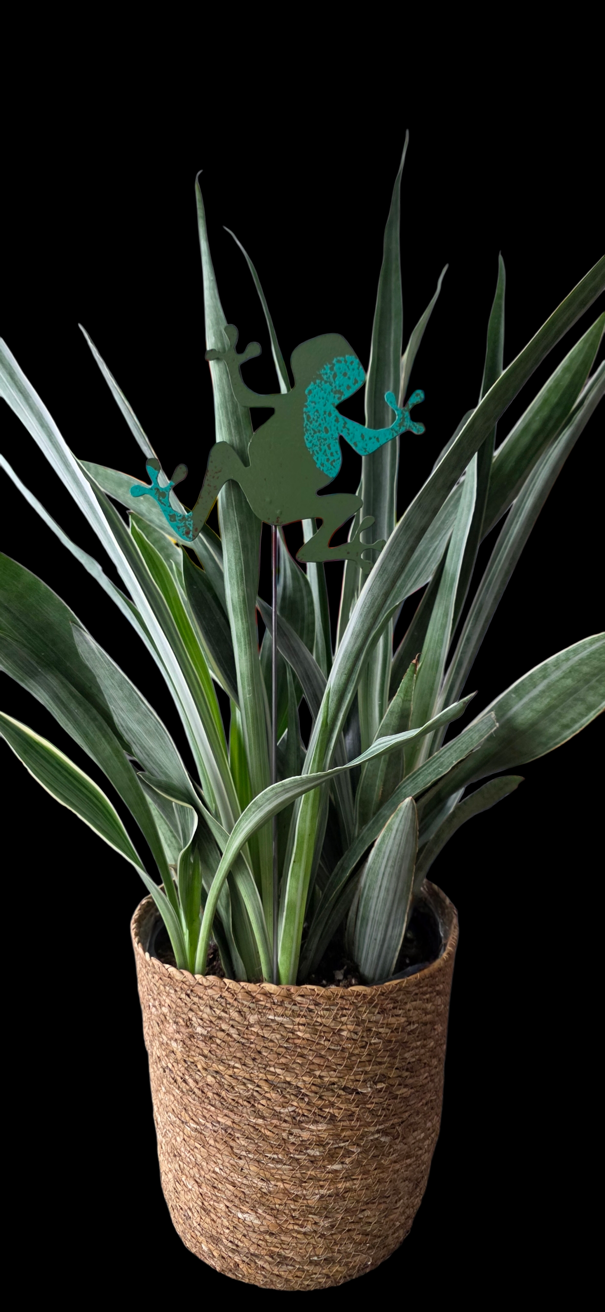 Metal frog designed by hidden hollow ART. Painted on one side. The back is bare steel.