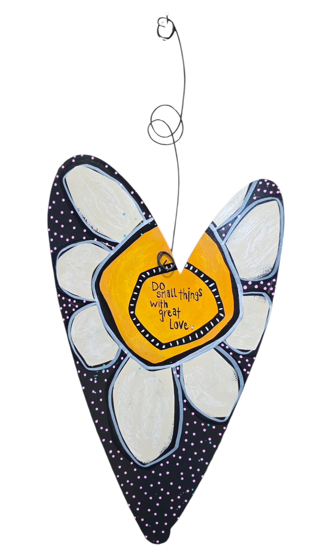 hanging | metal heart designed by hidden hollow ART. Painted by jaim danes art life. Painted on one side. The back is bare steel.