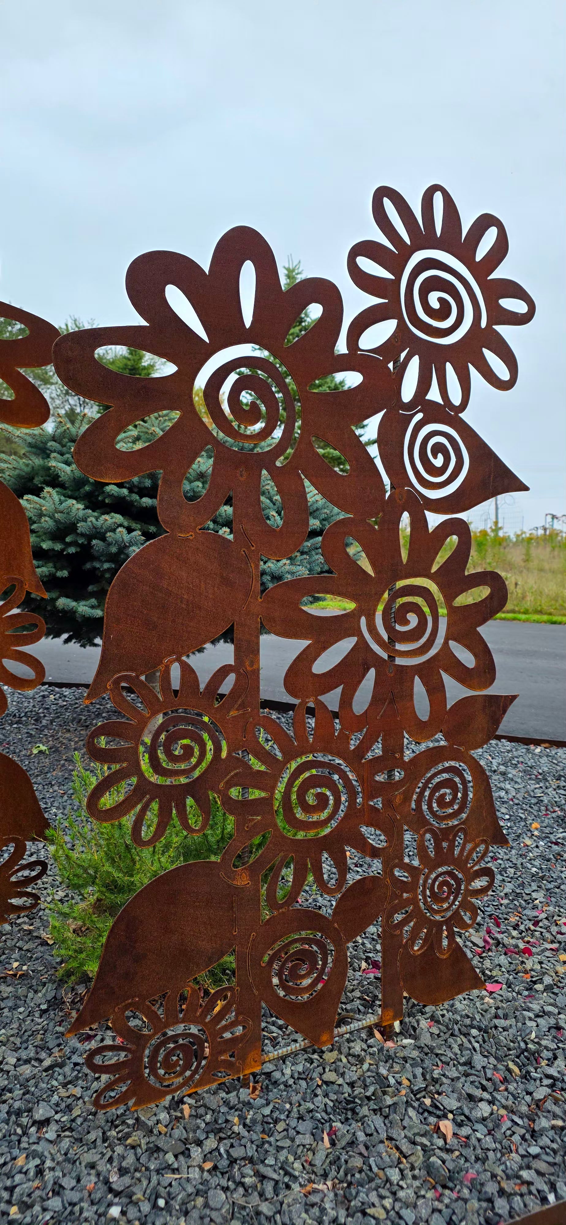 Metal rusty floral panel designed by hidden hollow ART. This piece will continue to rust beautifully.